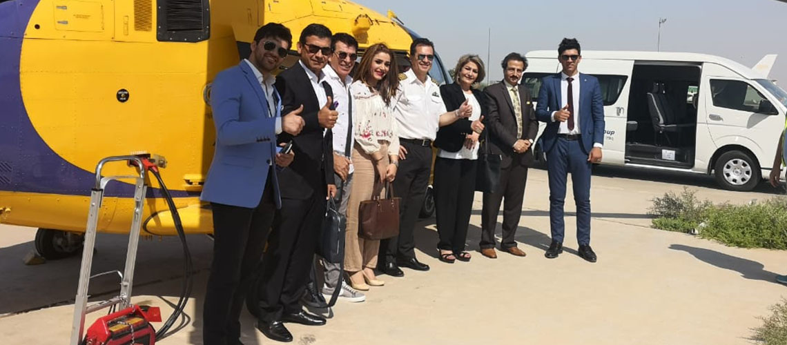 Al-Burhan Airways had the pleasure of transporting well-known Iraqi TV Celebrities in our helicopter from Baghdad to attend the grand opening of a new residential compound in Tikrit on 22 July 2018. The passengers manifest included famous names in the Iraqi TV Industry such as Qasim Al mallak, Ayad Radhi, Alaa Hussein and Asia Kamal.